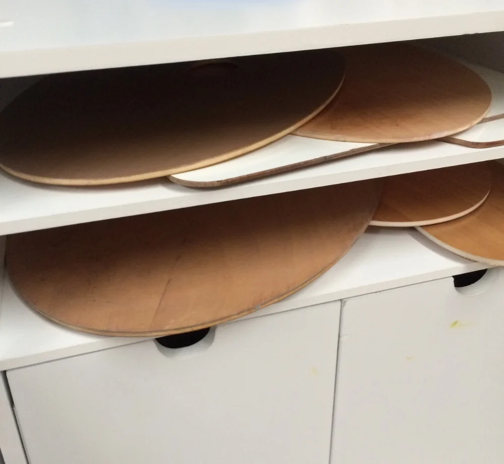 I store my palette flat in a cubbyhole to keep dust from settling on it and becoming incorporated into the layer of linseed oil.