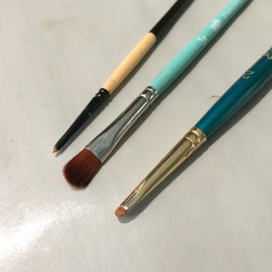 Top left: Dynasty Black Gold, Middle: Princeton Mop, Bottom Right: Robert Simmons Expression