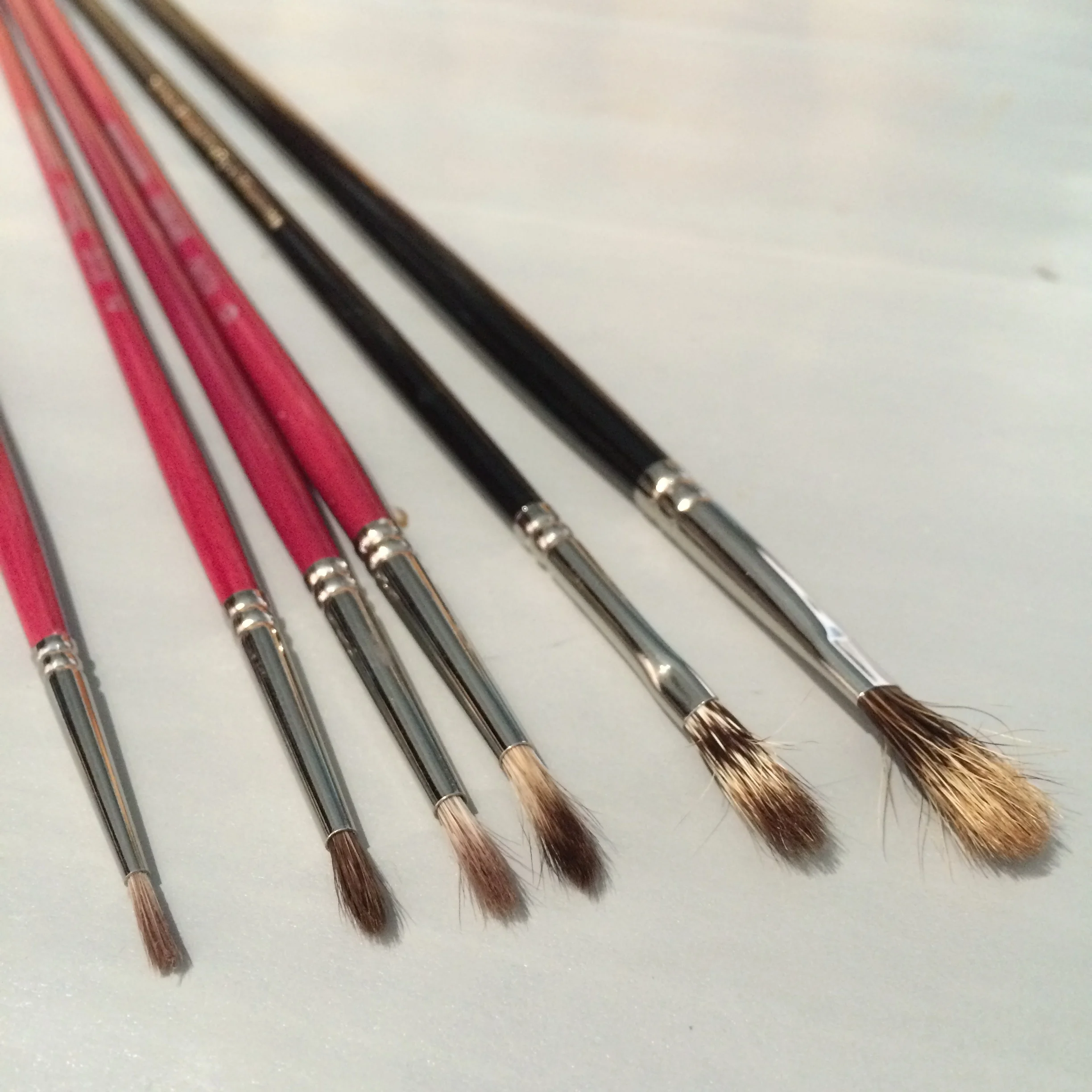 I use a lot of different brushes for the different things that I paint. I find that the shape, type of hair and softness of the brush are important to achieving the desired effect.